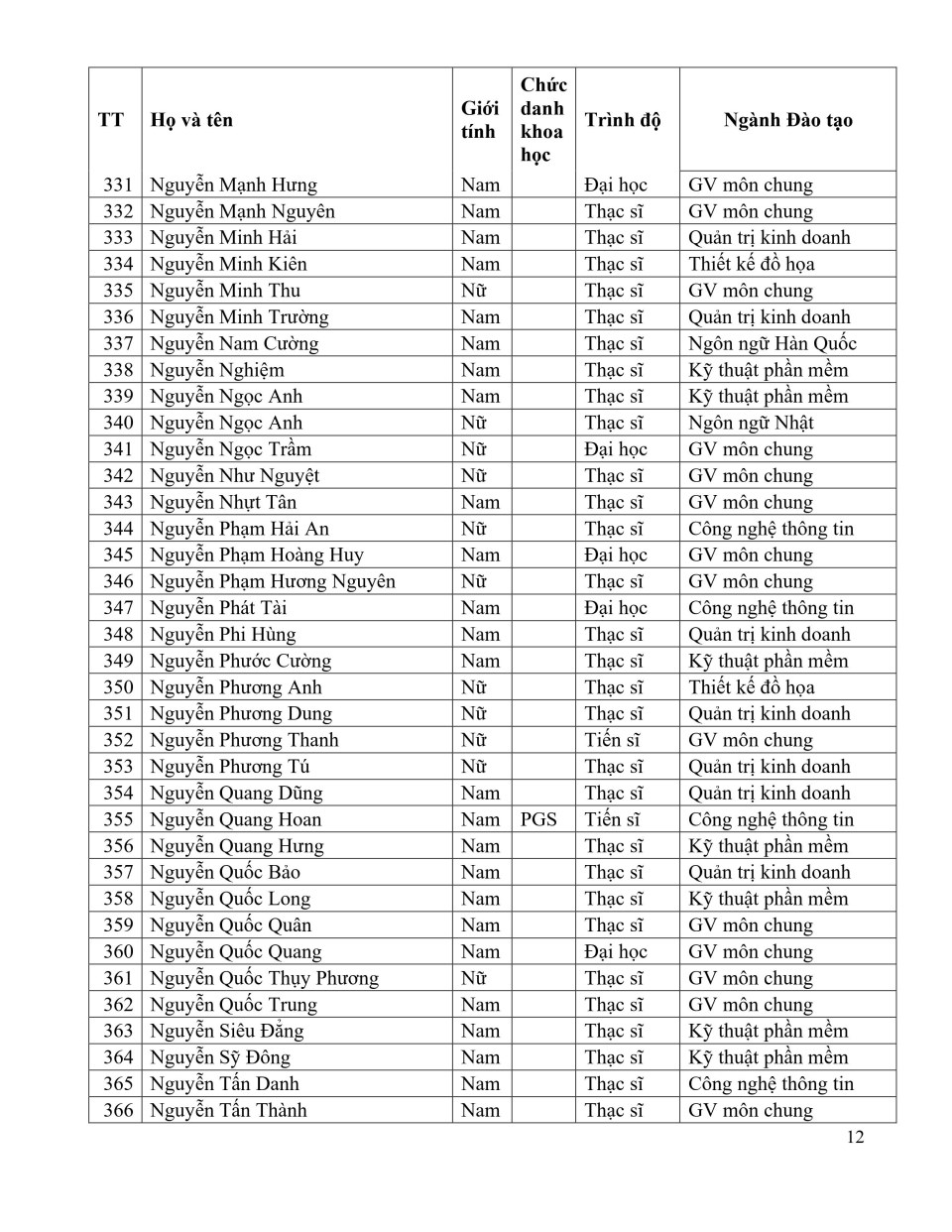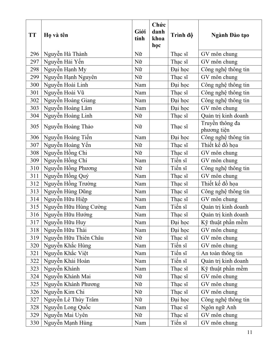 Công khai giảng viên cơ hữu năm học 2011 - 2012