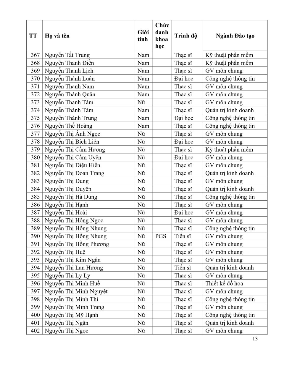 Công khai giảng viên cơ hữu năm học 2013 - 2014