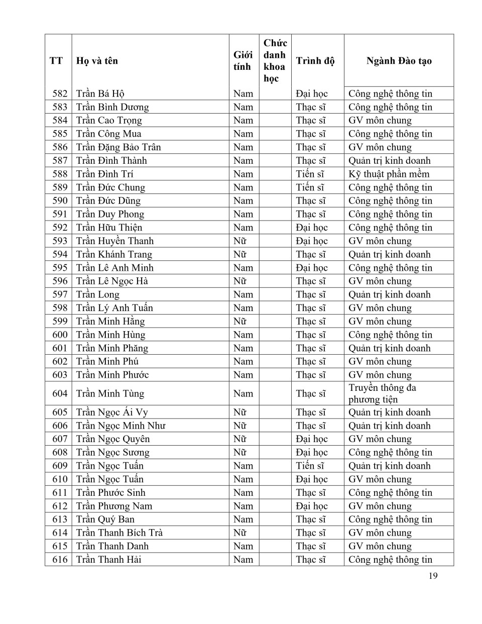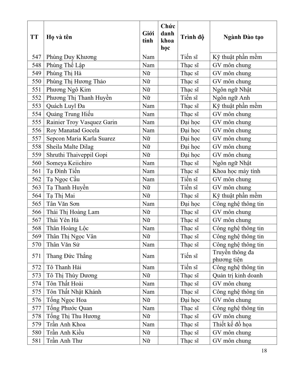 Công khai thông tin về đội ngũ GV cơ hữu của cơ sở giáo dục đại học năm học 2018 - 2019