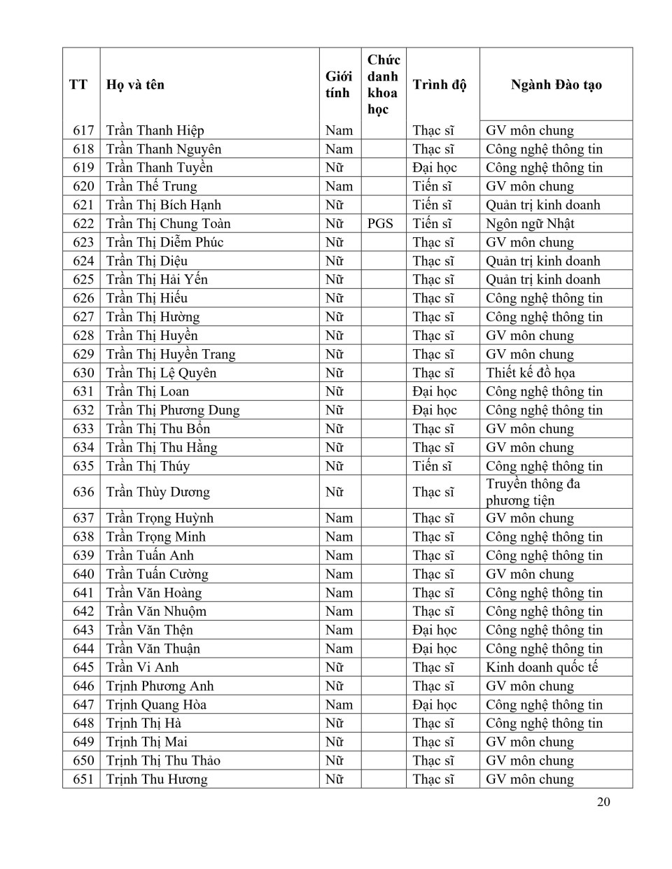 Công khai thông tin về đội ngũ GVCH của cơ sở giáo dục đại học, trường cao đẳng sư phạm, trung cấp sư phạm năm học 2017-2018