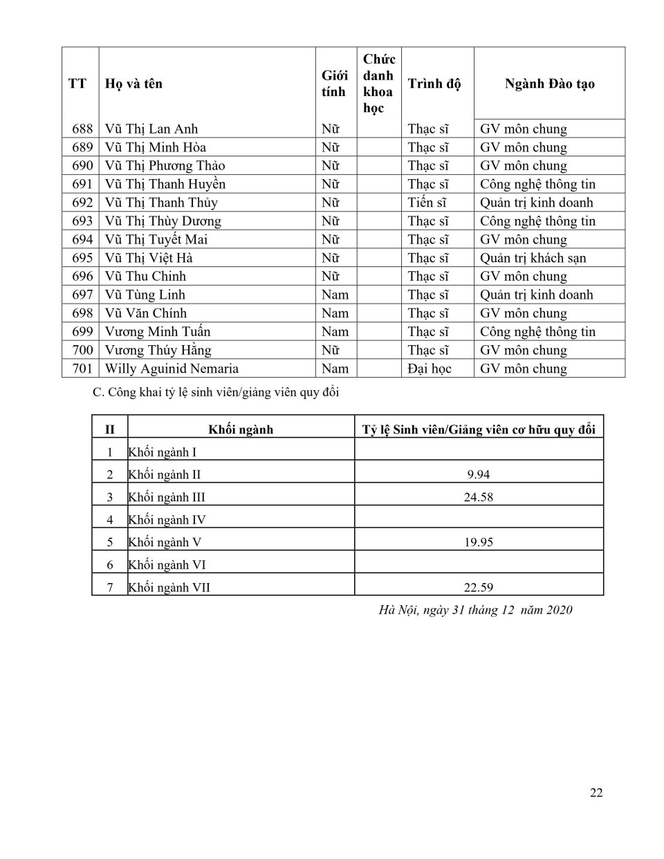 Công khai thông tin chất lượng đào tạo thực tế của cơ sở giáo dục đại học năm học 2021 - 2022