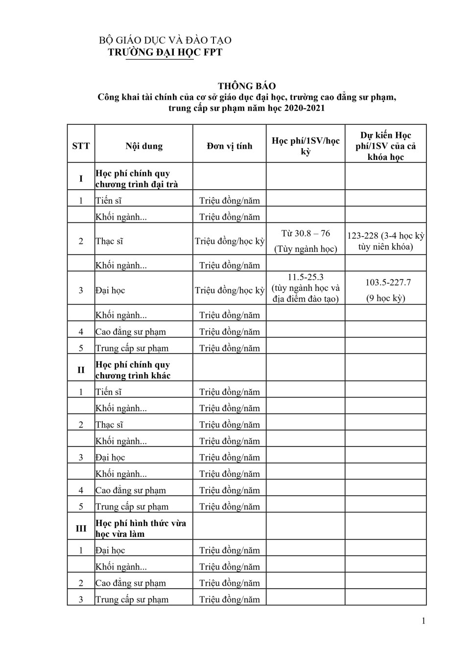 Công khai tài chính của cơ sở giáo dục đại học, trường cao đẳng sư phạm, trung cấp sư phạm năm học 2021-2022
