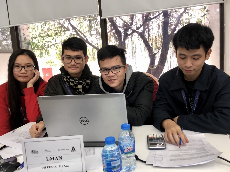 Là đại diện duy nhất của FUNiX tại đầu cầu Hà Nội, đội LMAN cũng tập trung cao độ cho phần thi Codelearn. Được biết, LMAN có 3 trong 4 thành viên mới chỉ là học sinh cấp 3 của trường THPT tại Hà Nội là Nguyễn Đình Anh, Phạm Vũ Thái Minh và Nguyễn Phương Linh. “Các bài toán trong phần thi khá khó đối với nhóm nên các thành viên cũng mất thời gian hơn. Nhóm đã giải được 6 bài trên tổng số 10 bài, bài khó nhất mất 30 phút để giải xong và submit lên hệ thống. Vị trí xếp hạng của nhóm đang lọt top 10 nên trong 30 phút cuối cùng của phần thi các thành viên sẽ nỗ lực hết mình để giải quyết các bài toán cuối cùng”, Đình Anh – nhóm trưởng LMAN chia sẻ.