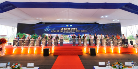 Tổ hợp giáo dục FPT tại Bình Dương khởi công ngày 18/6 là công trình trọng điểm được xây dựng phù hợp với định hướng phát triển của địa phương. Dự án tọa lạc tại phường Thái Hòa, thành phố Tân Uyên, trên khu đất hơn 84.000 m², với tổng diện tích sàn xây dựng khoảng 130.000 m². Công trình bao gồm giảng đường, ký túc xá, khu dịch vụ đa năng, sân bóng tiêu chuẩn và các hạng mục phụ trợ, đáp ứng đầy đủ tiện ích học tập, sinh hoạt cho người học.