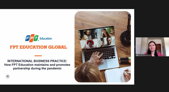 Để làm rõ hơn điều này, trong ngày thứ 3 của sự kiện (13/8), chị Hồ Thị Thảo Nguyên đã có những chia sẻ đặc biệt về cách FPT Education duy trì và thúc đẩy mối quan hệ hợp tác trong thời kỳ đại dịch. Chị Thảo Nguyên đã đưa ra nhiều trường hợp và hoạt động thực tế mà Tổ chức Giáo dục FPT đã từng xây dựng và giữ mối quan hệ thân thiết với sinh viên và đối tác. Buổi chia sẻ đã thu hút rất nhiều sự quan tâm và thắc mắc của người tham dự. Tất cả các hoạt động trong thời gian vừa qua là minh chứng cho việc FPT Education Global mang đến những chương trình chất lượng cao và đổi mới cho sinh viên quốc tế.