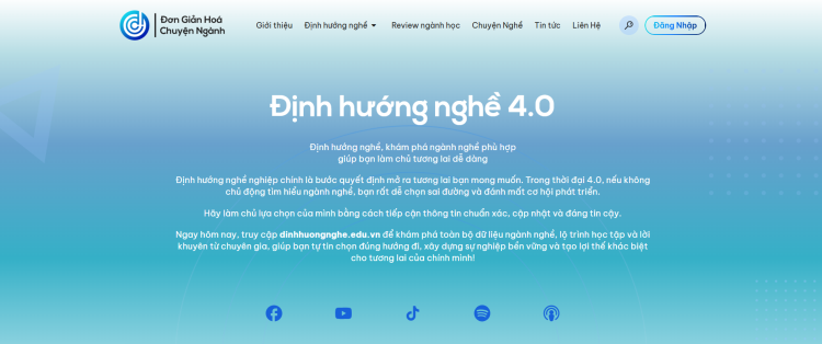 Để hoàn thiện hệ sinh thái, FPT phát triển nền tảng web dinhhuongnghe.edu.vn với cơ sở dữ liệu phong phú về ngành nghề, trường học, thị trường lao động và các lộ trình nghề nghiệp. Tại đây, học sinh và sinh viên có thể đọc bài phân tích chuyên sâu về xu hướng việc làm, yêu cầu tuyển dụng hoặc mức độ cạnh tranh của từng ngành.