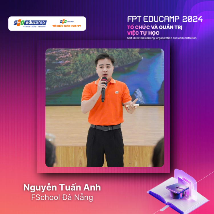 Anh Tuấn Anh chia sẻ: “Tại FPT Educamp 2023, trong phiên toàn thể, mình được nghe keynote chia sẻ về việc đưa AI vào công tác giảng dạy. Ngày ấy, mình cũng mới bắt đầu nghề giáo thôi nên vẫn khá mơ hồ về việc ứng dụng AI vào các bài học. Sau khi được nghe những chia sẻ đó, mình cảm thấy như được "nạp" một luồng gió mới, thôi thúc mình phải tìm hiểu và học cách sử dụng AI ngay. Sau đó, mình quyết định tìm học các khóa học cơ bản về ứng dụng AI trong công tác giảng dạy, đổi mới cách truyền tải kiến thức, giúp học sinh tiếp cận hiệu quả hơn.
