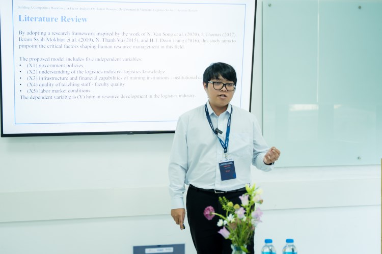 Logistics được xem là một trong những trụ cột quan trọng của nền kinh tế Việt Nam trong bối cảnh hội nhập toàn cầu và chuyển đổi số. Tuy nhiên, sự thiếu hụt nhân lực chất lượng cao đang là rào cản lớn đối với sự phát triển bền vững của ngành này. Hiểu rõ thực trạng đó, nhóm tác giả Nguyễn Hoàng Ân, Đặng Thanh Tuấn (Trường ĐH Quốc tế Hồng Bàng), Vũ Bảo (Trường ĐH FPT) và Nguyễn Ngọc Ân Thy (Trường CĐ Công thương, TP. HCM) đã mang đến FCBEM 2024 đề tài nghiên cứu: "Building a Competitive Workforce: Factor Analysis of Human Resource Development in Vietnam's Logistics Sector" (Phân tích các yếu tố ảnh hưởng đến phát triển nguồn nhân lực trong ngành logistics tại Việt Nam).