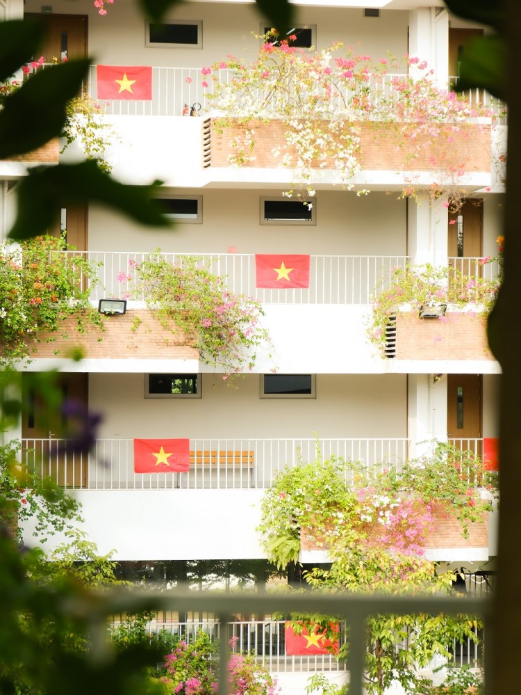 Toàn campus như hòa nhịp với ngày hội lớn của dân tộc, đứng vào bất cứ góc nào cũng có thể cho ra đời những bộ ảnh yêu nước vừa đẹp vừa cảm xúc.