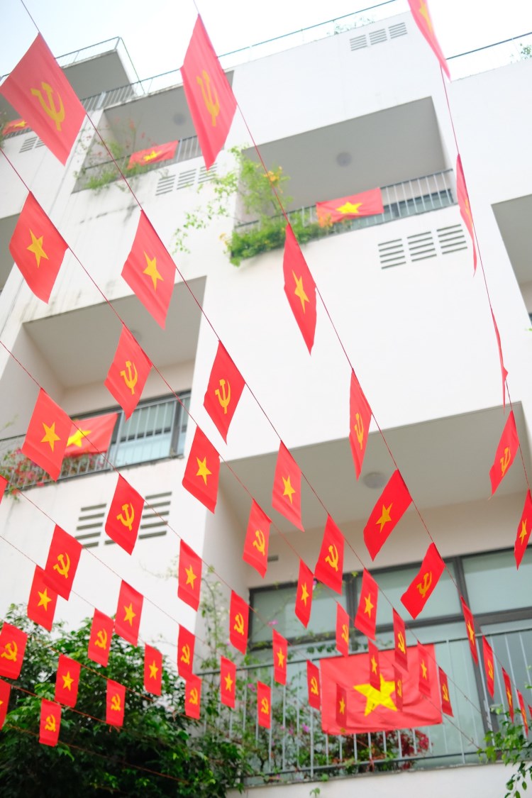 Mỗi lối nhỏ đều rực rỡ sắc cờ đỏ sao vàng.