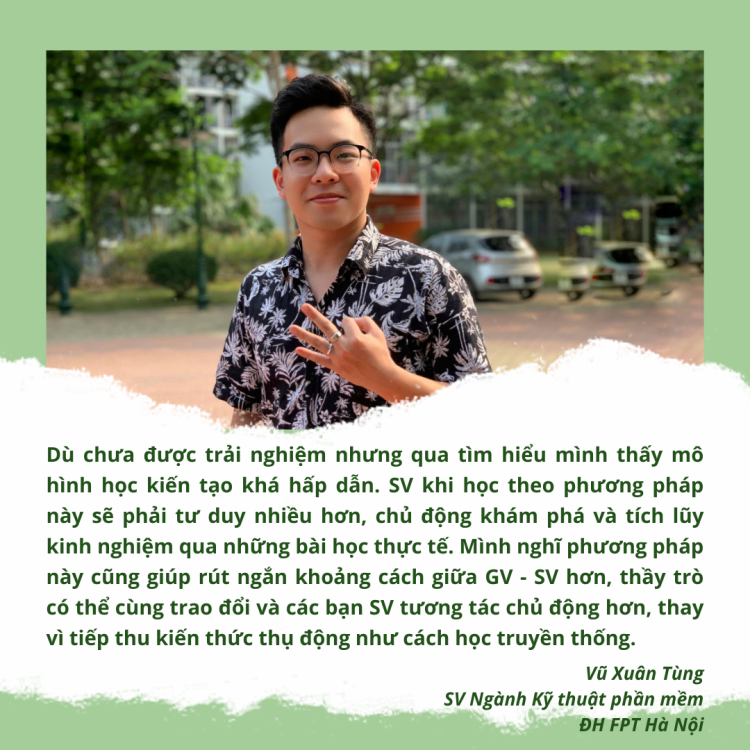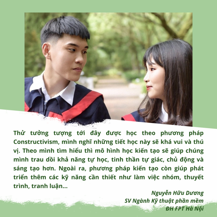 Dù chưa trải nghiệm giờ học kiến tạo hoặc mới bước đầu được làm quen với phương pháp Constructivism nhưng sinh viên trường ĐH FPT vẫn tỏ ra khá hào hứng khi tìm hiểu và đưa ra những hình dung, câu trả lời thú vị cho câu hỏi này.