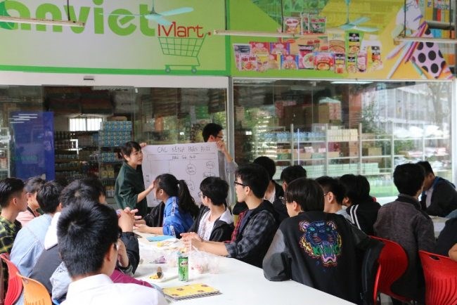 Đặc biệt nhất là phần bài tập cuối kỳ “Dự án kinh doanh” vô cùng hấp dẫn mà một số lớp đăng ký làm. Rất nhiều nhóm lớp đã thực hiện ý tưởng bán hàng tại trường: đồ uống, đồ ăn vặt, bánh, hoa quả … Không những vậy, các dự án còn được góp mặt trong ngày hội “Đầu tư và kinh doanh công nghệ” – sự kiện thường niên để tổng kết môn Business, đồng thời kết hợp bộ môn tự nhiên.